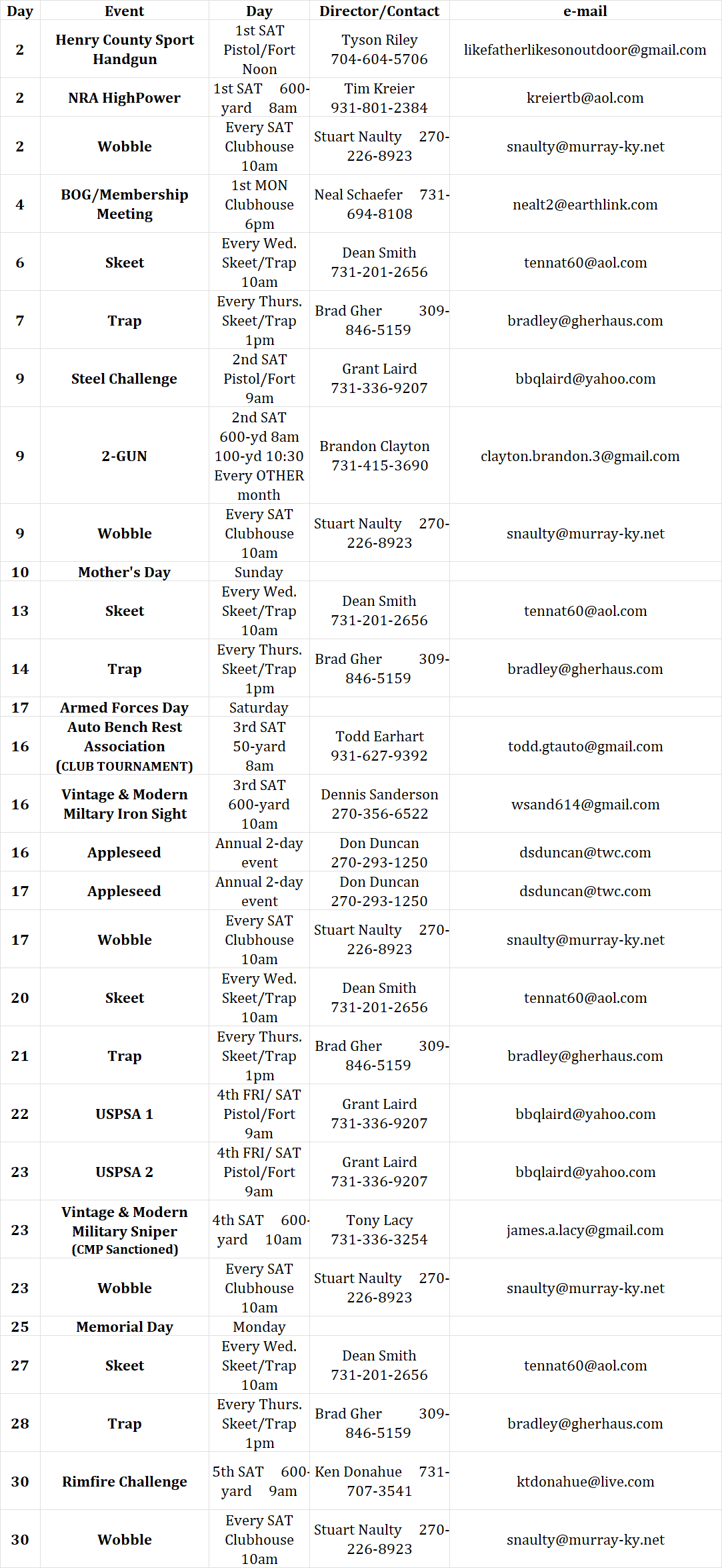 Match Info & Director Contact